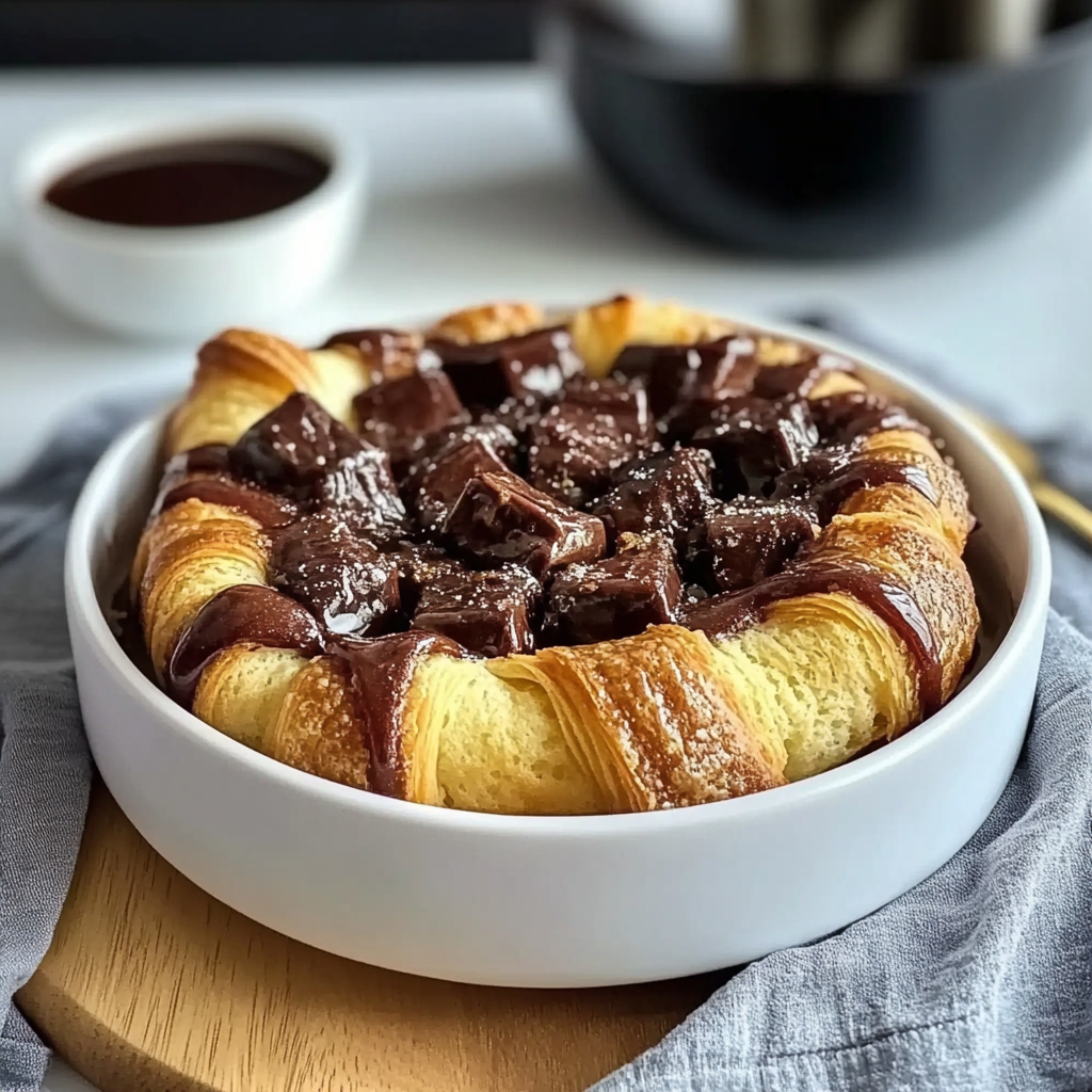 A Chocolate Croissant Breakfast Bake is a delightful dish that combines buttery croissants with rich chocolate, eggs, and cream, baked together to create a warm, gooey breakfast treat. It’s perfect for brunch or a weekend family gathering. The croissants soak up the egg mixture, turning crispy on top and soft inside while the chocolate melts into sweet pockets of goodness.