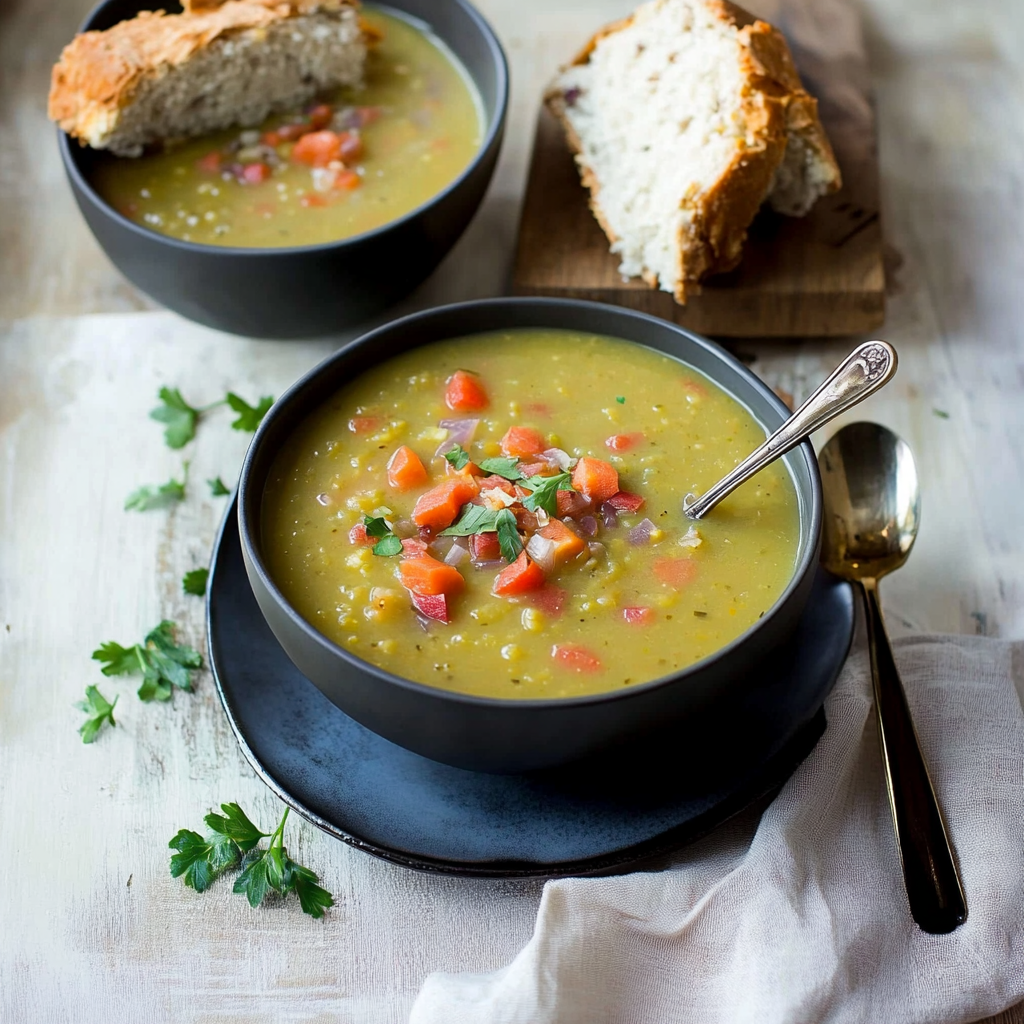 Warm up your chilly days with this nourishing split pea soup, brimming with wholesome ingredients and rich flavors that comfort the soul.
