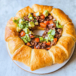 A taco ring with crescent rolls is a delicious and fun twist on traditional tacos. This dish features seasoned ground beef or turkey wrapped in flaky crescent roll dough, shaped into a ring. It’s often topped with cheese, lettuce, tomatoes, and other favorite taco toppings. This recipe is perfect for parties or family dinners since it’s easy to make and always a crowd-pleaser.