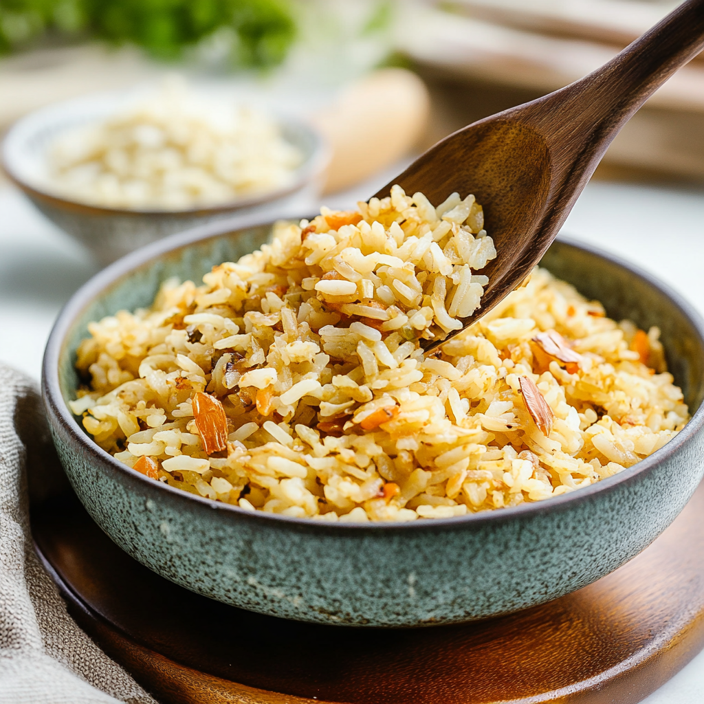 Delight in this comforting rice pilaf, where fluffy grains and aromatic herbs create a satisfying dish that elevates any meal.