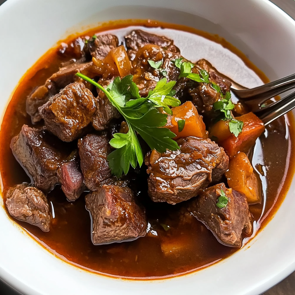 Warm up with this hearty beef stew, filled with tender chunks of beef and vibrant vegetables simmered in a rich broth. Perfect for cozy nights or family gatherings.