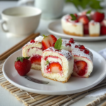 Strawberry Shortcake Cheesecake Dessert Sushi Rolls are a delightful fusion of flavors and textures, combining creamy cheesecake filling with fresh strawberries, all wrapped in sweet dessert rice. This innovative dessert resembles sushi rolls but brings a completely different taste experience. It’s perfect for parties or a unique treat at home, appealing to both sushi lovers and dessert enthusiasts alike.